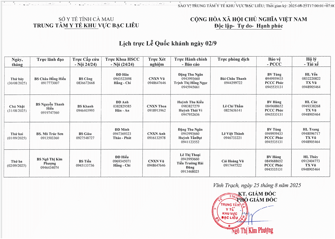 Lich trực lễ 02/9 năm 2025
