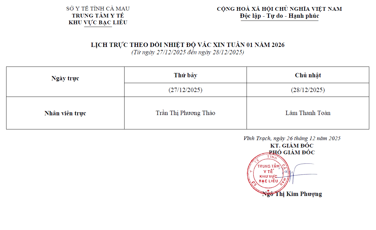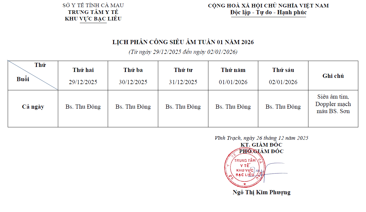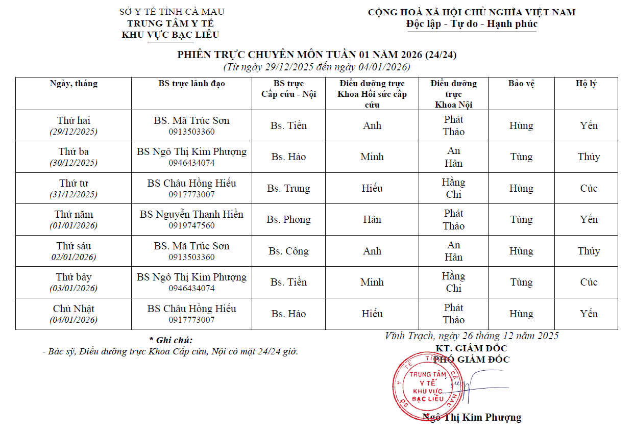 TRUNG TÂM Y TẾ KHU VỰC BẠC LIÊU