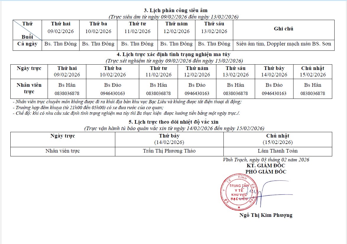 Lich trực tuần 07 năm 2026
