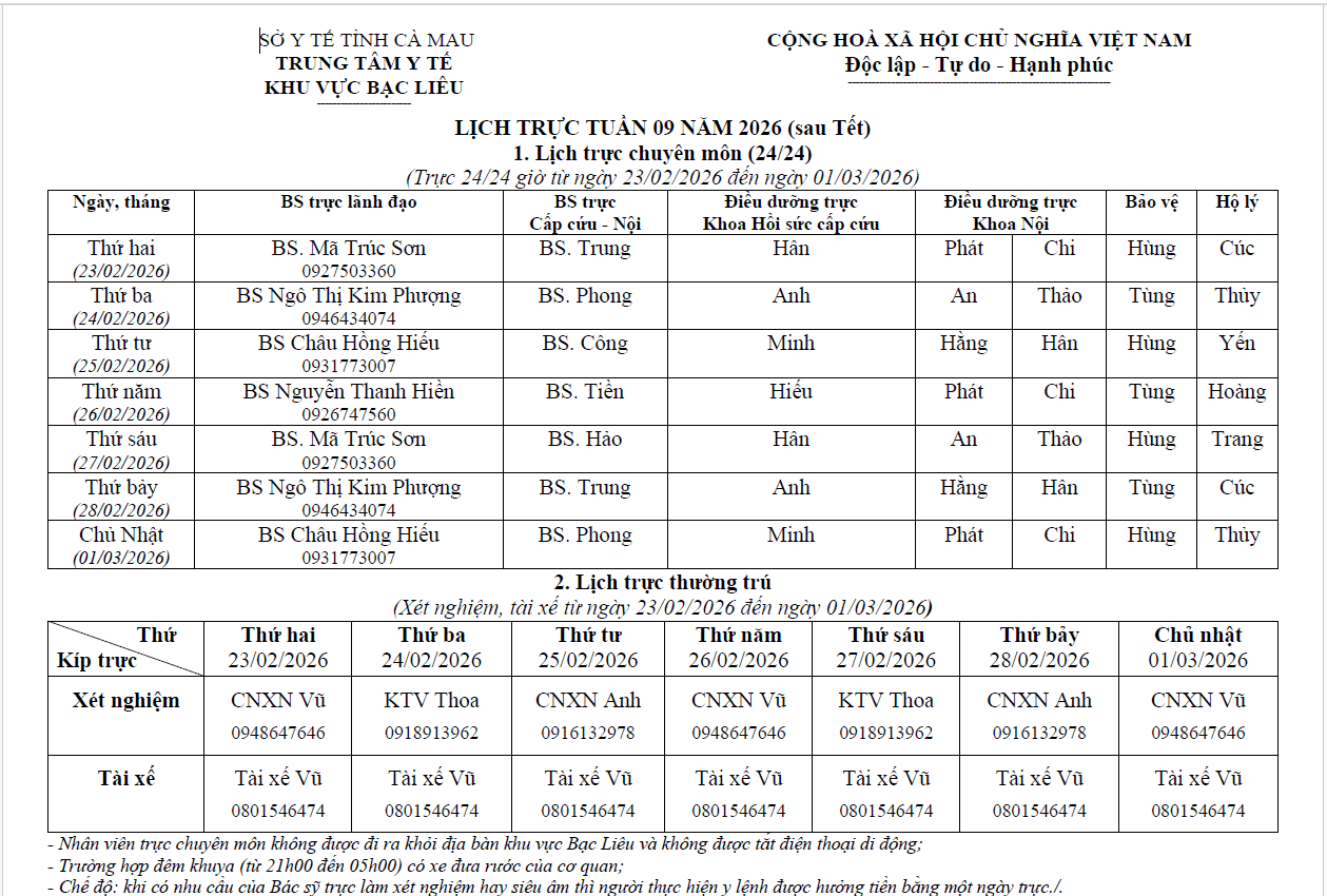 TRUNG TÂM Y TẾ KHU VỰC BẠC LIÊU