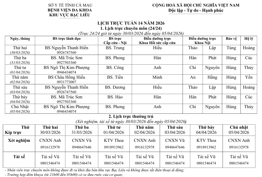 BỆNH VIỆN ĐA KHOA KHU VỰC BẠC LIÊU