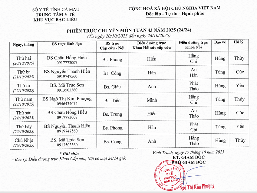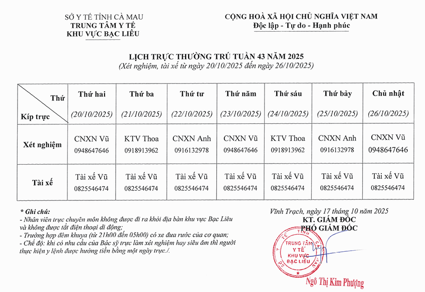 TRUNG TÂM Y TẾ KHU VỰC BẠC LIÊU