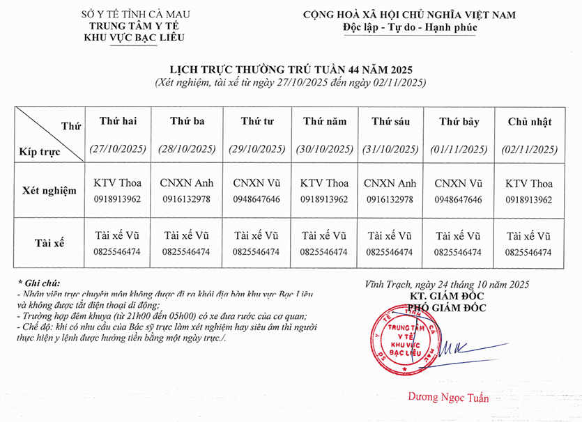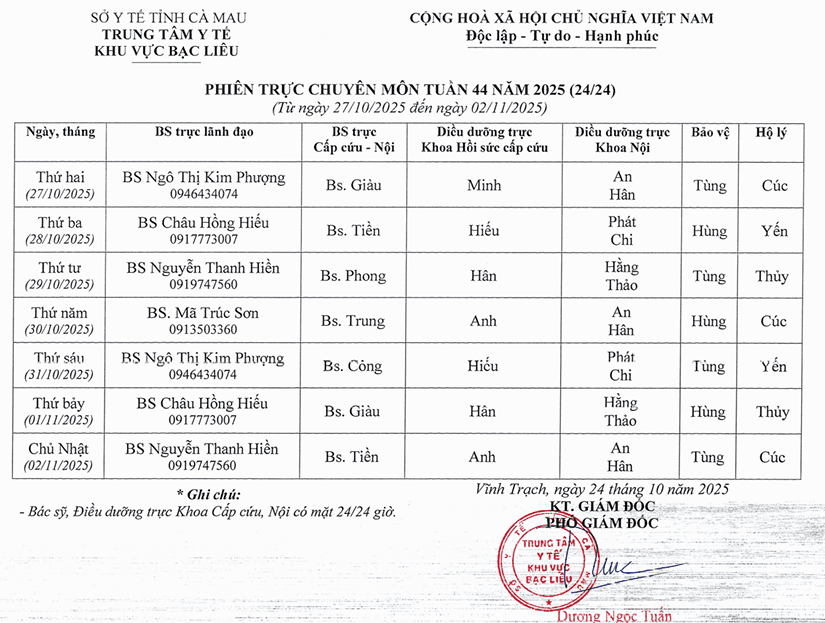 TRUNG TÂM Y TẾ KHU VỰC BẠC LIÊU
