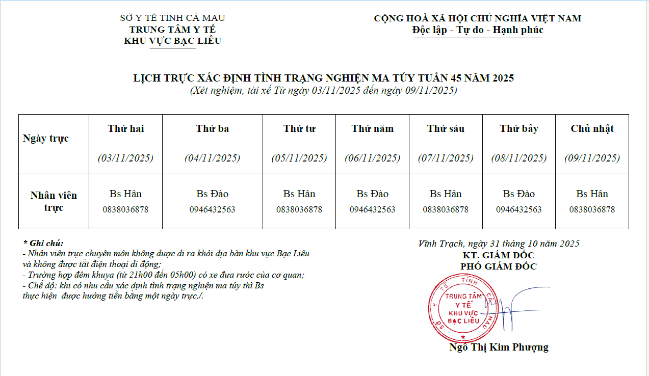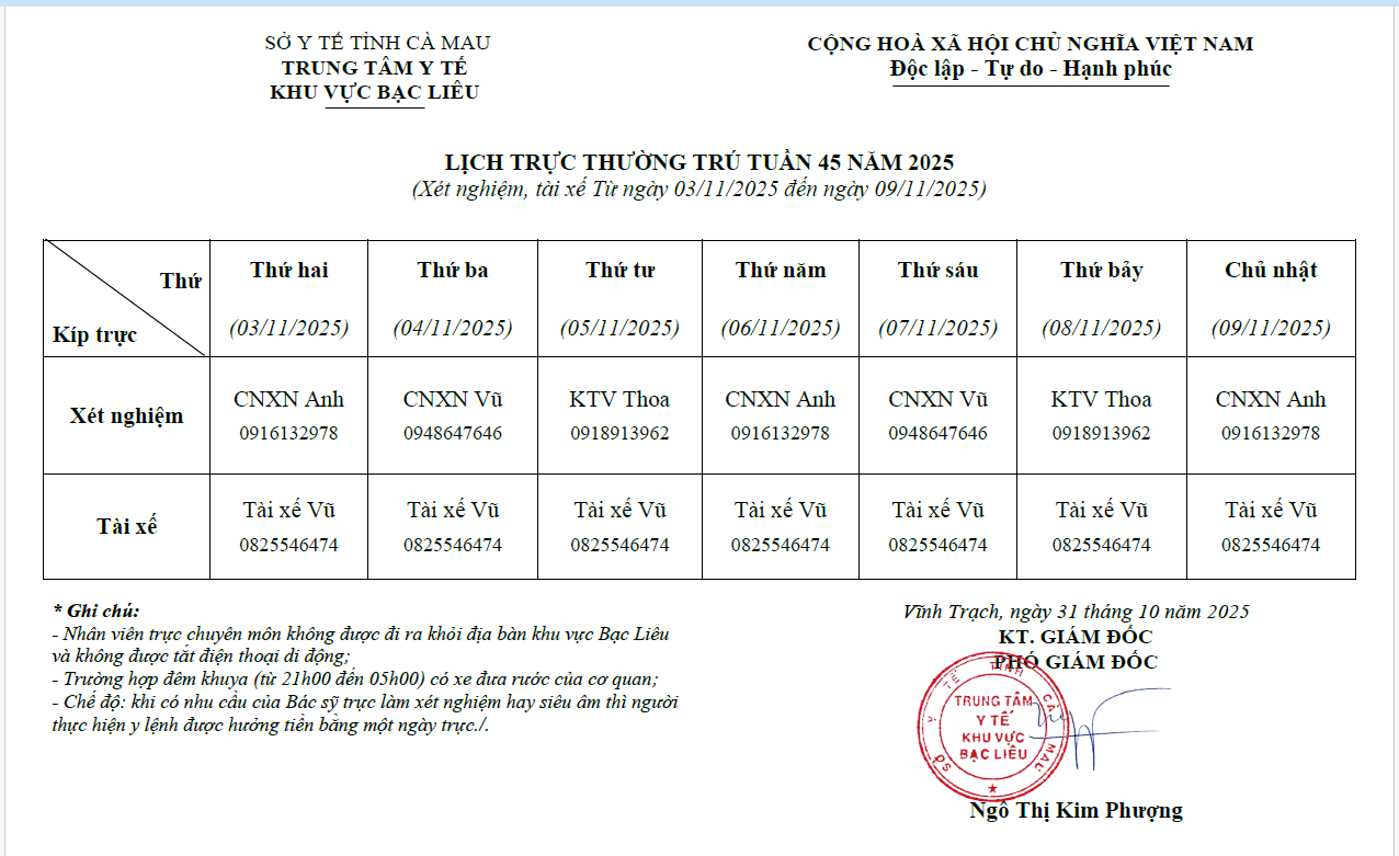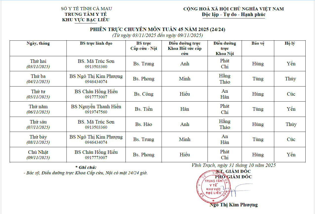 Lich trực tuần 44 năm 2025  Lich trực tuần 43 năm  2025