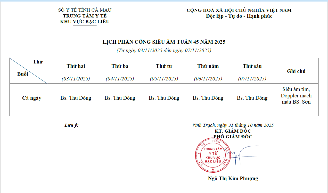 Lịch trực tuần 39 năm 2025  Lịch trực tuần 38 năm 2025