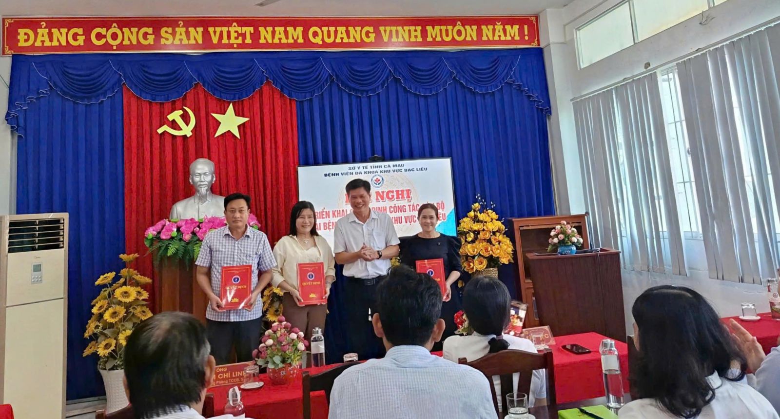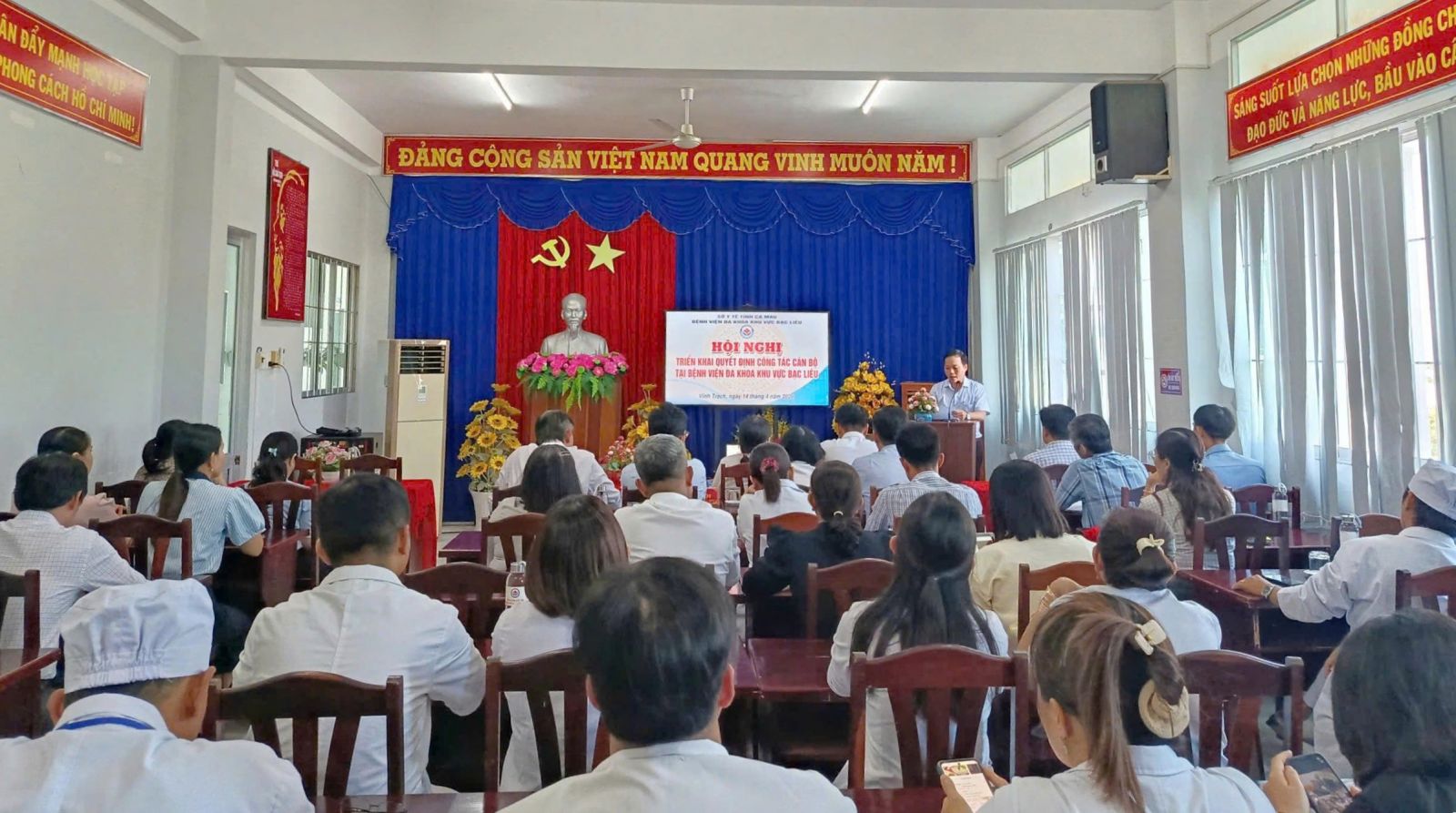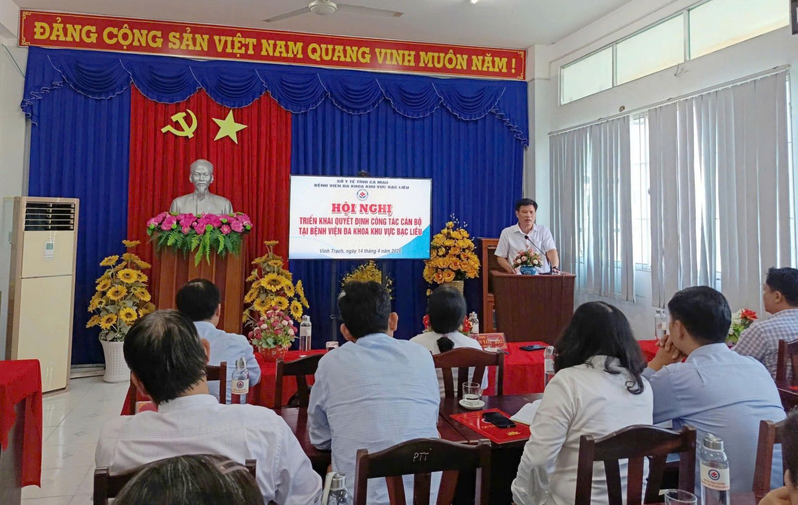 Thực hiện Kế hoạch số 68/KH-SYT ngày 10/4/2026 của Sở Y tế tỉnh Cà Mau về việc triển khai các Quyết định sắp xếp Trung tâm Y tế khu vực thuộc Sở Y tế, chiều ngày 14/4/2026, Bệnh viện Đa khoa khu vực Bạc Liêu đã diễn ra Hội nghị triển khai quyết định công tác cán bộ tại Bệnh viện.
