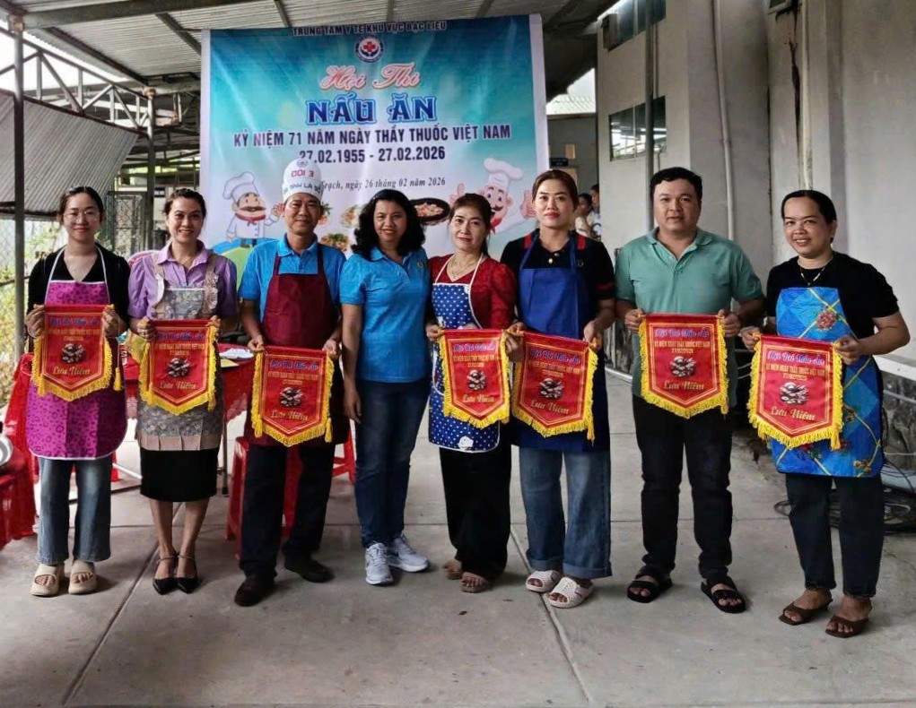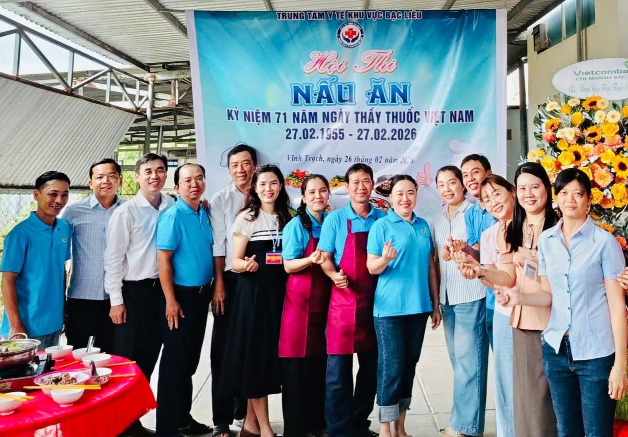 Thực hiện Kế hoạch số 04/KH-CĐYT ngày 09/02/2026 của Công đoàn cơ sở Trung tâm Y tế khu vực Bạc Liêu về việc tổ chức Hội thi nấu ăn kỷ niệm Ngày Thầy thuốc Việt Nam 27/02/2026, nhằm tạo sân chơi giải trí lành mạnh, bổ ích; tăng cường sự chia sẻ, gắn kết và tinh thần đoàn kết giữa các công đoàn viên, chiều ngày 26/02/2026, Trung tâm Y tế khu vực Bạc Liêu đã tổ chức Hội thi nấu ăn chào mừng 71 năm Ngày Thầy thuốc Việt Nam (27/02/1955 - 27/02/2026).
